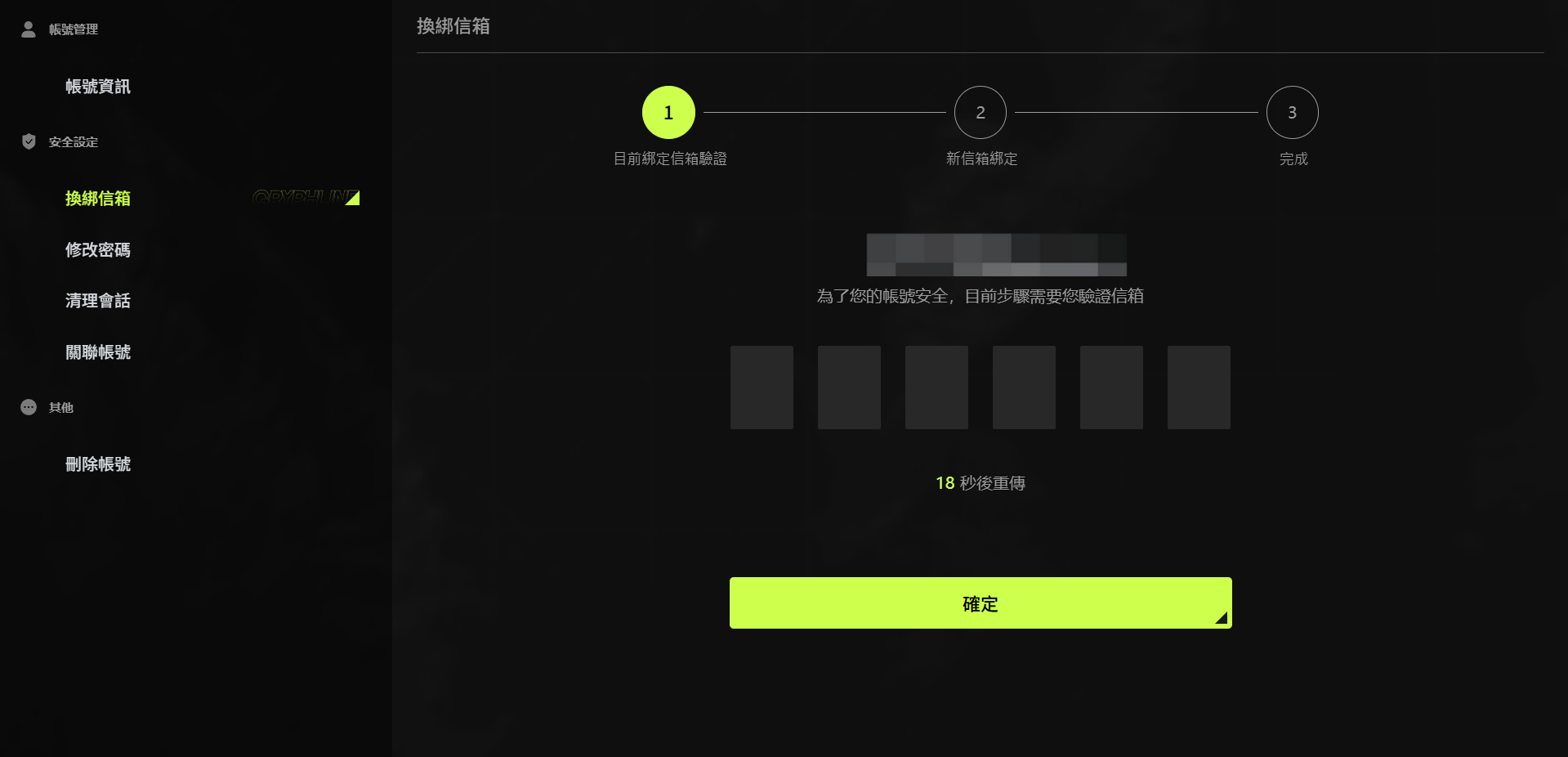 3. 輸入驗證碼後,輸入您需要綁定的新電子信箱,並再次點選【取得驗證碼】即可。